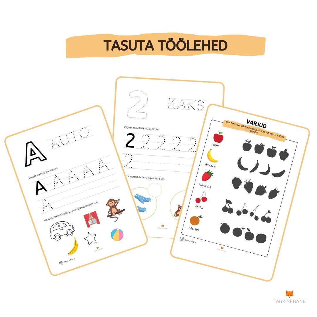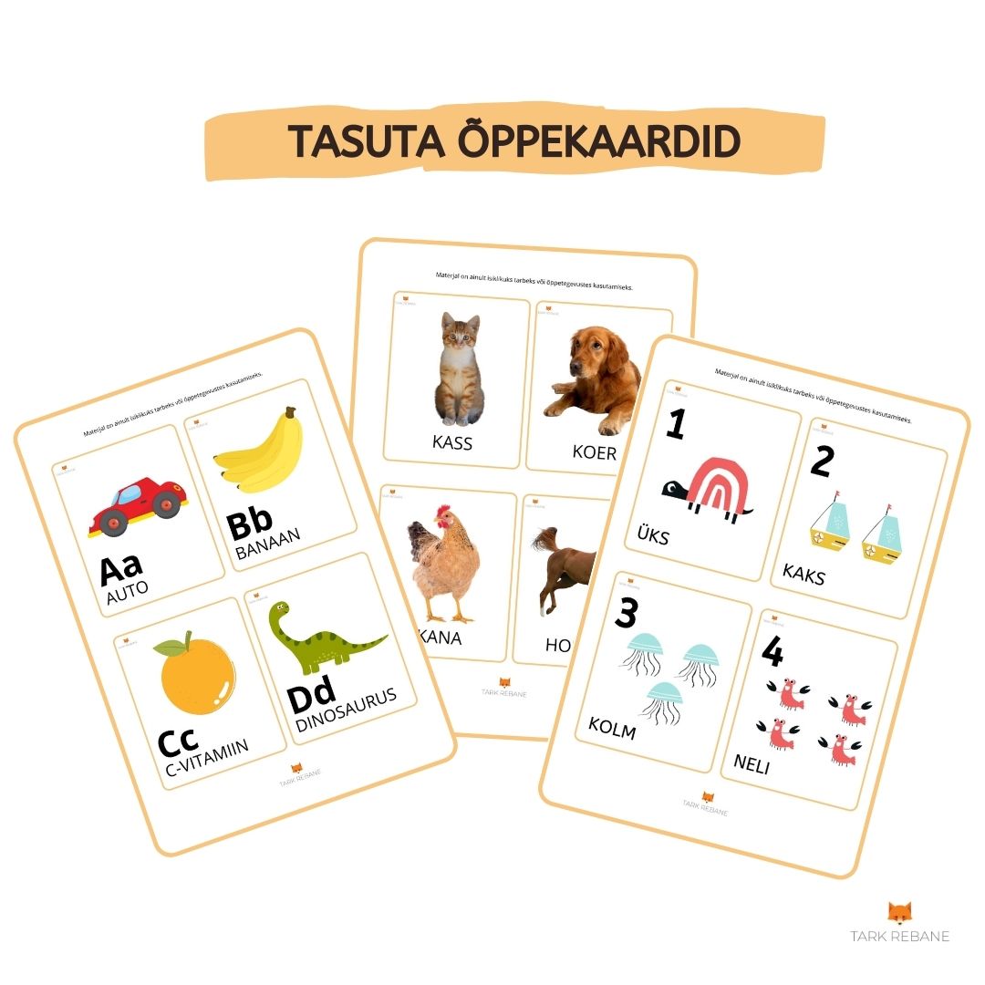tasuta töölehed, õppekaardid ning tähe- ja numbrikaardid lastele.